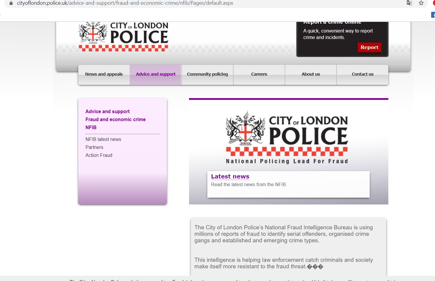 เว็บไซต์สำนักงานปราบปรามการฉ้อโกงแห่งชาติ (NFIB) สังกัดกรมตำรวจอังกฤษ
