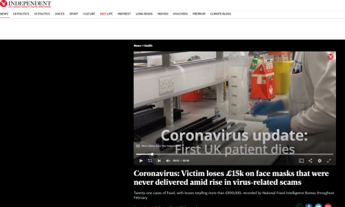 โดยสัปดาห์ที่ผ่านมาสำนักข่าว Independent ของอังกฤษ รายงานว่า ในช่วงเดือน ก.พ. มีชาวอังกฤษที่ต้องตกเป็นเหยื่อขบวนการฉ้อโกงทางอีเมลซึ่งมีเนื้อหาเกี่ยวกับไวรัสโคโรน่า ต้องสูญเสียเงินไปเกือบ 1 ล้านปอนด์ ทั่วประเทศ