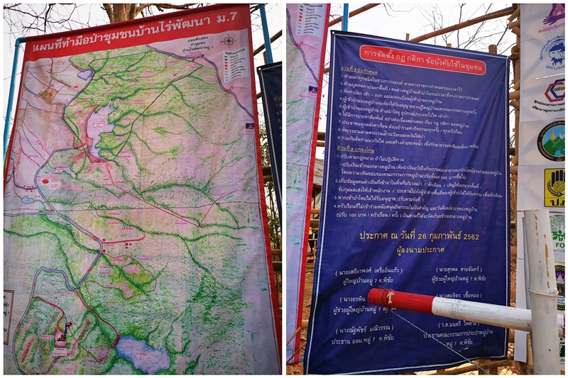 "แผนที่ทำมือช่วยจัดการป่า" เป็นเครื่องมือหนึ่งที่เขาและชาวบ้านไร่พัฒนาร่วมกันทำขึ้น ผู้ใหญ่เสถียรพงศ์ ชี้ไปที่แผนที่ทำมือช่วยจัดการป่า ขนาดใหญ่ ตั้งตระหง่านอยู่หน้าทางเข้าป่าชุมชน