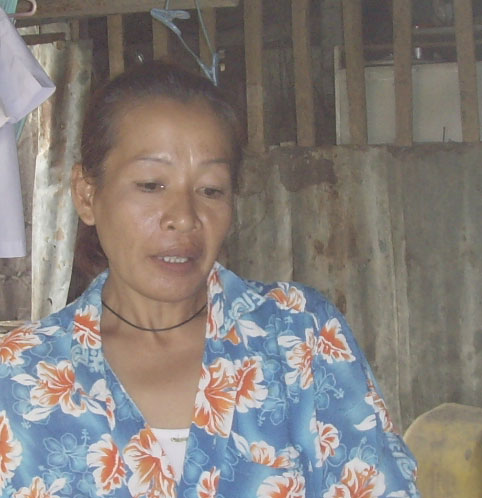 คนที่สอง นางสำเนียง จวงสาง กล่าวว่า เดิมมีบ้านดีกว่านี้เป็นบ้านที่หลวงพ่อปรีชาสร้างให้คนยากจนแต่พอสร้างให้เสร็จ แม่ไม่ให้อยู่ด้วย จึงมาปลูกเพิงพัก เลี้ยงหมูไว้ 2 ตัว อาชีพทุกวันนี้ทำอาชีพรับจ้างซักผ้ารีดผ้า รายได้ไม่มีแน่นอน นอกจากนี้ยังต้องแบบรับภาระหลานวัยขวบเศษที่ลูกสาวทิ้งไว้ แล้วไปมีครอบครัวใหม่