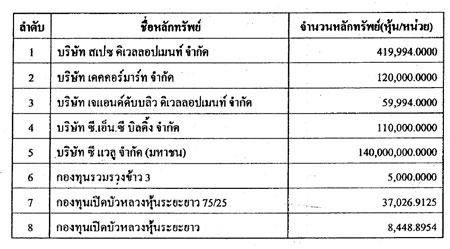 1.บริษัทสเปซ ดิเวลลอปเมนท์ จำกัด จำนวน 419,944 หุ้น