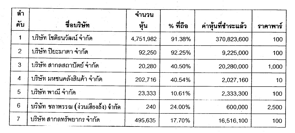 1.บริษัทโชติธนวัฒน์ จำกัด ถือหุ้น 91.38% มูลค่า 370,823,600