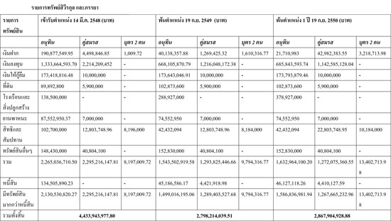 ทรัพย์สินมากกว่าหนี้สิน 2,295,216,147.81 บาท และบุตร 2 คน มีทรัพย์สินมากกว่าหนี้สิน 8,197,009.72 บาท