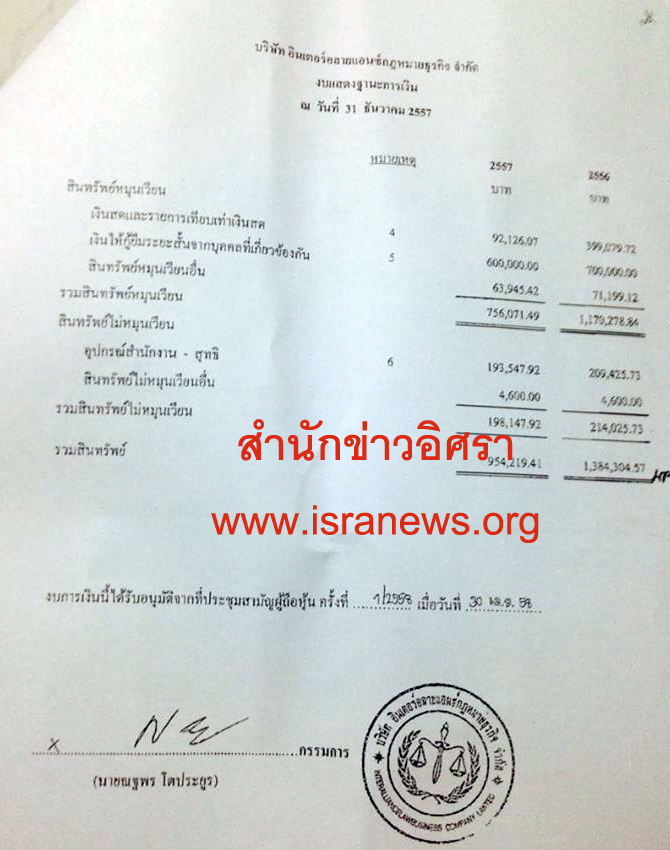 - เจาะงบดุล บ.'กุนซือปธ.ผู้ตรวจการแผ่นดิน' ไม่พบค่านายหน้าขายที่ ศุภชัย 15 ล.