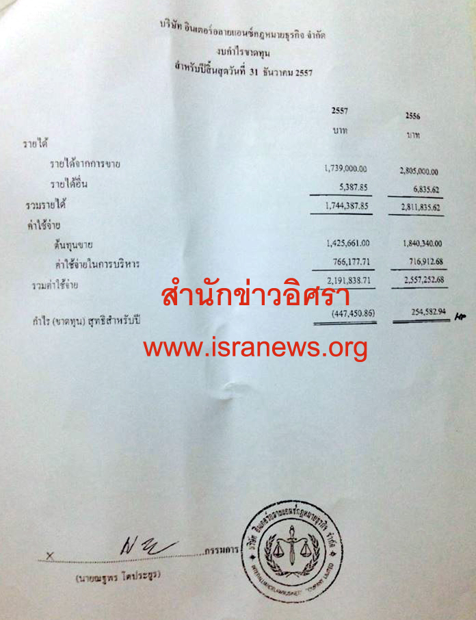 ขาดทุนสุทธิ 447,450.86 บาท (ดูเอกสารประกอบ)
