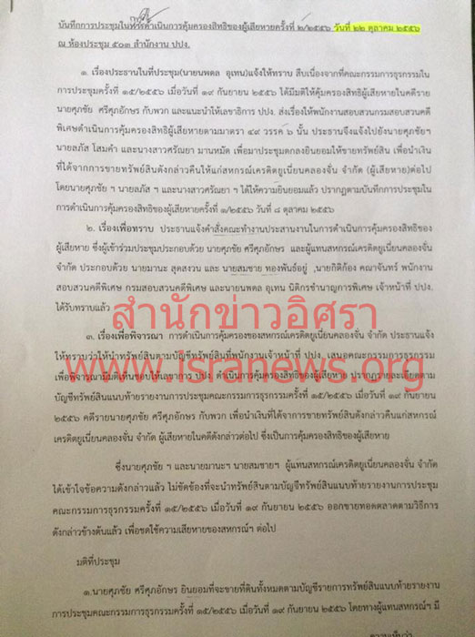 สำนักข่าวอิศรา www.isranews.org ตรวจสอบพบบันทึกการประชุมเพื่อดำเนินการคุ้มครองสิทธิผู้เสียหายครั้งที่ 2/2556 เมื่อวันที่ 22 ต.ค. 2556 ที่สำนักงาน ปปง. โดยมีตัวแทนสำนักงาน ปปง. ตัวแทนดีเอสไอ นายศุภชัย และตัวแทนผู้เสียหายเข้าร่วมประชุมด้วย