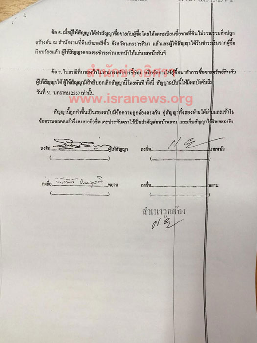 อย่างไรก็ดี สำนักข่าวอิศรา www.isranews.org ตรวจสอบสัญญานายหน้าค้าที่ดิน ทำสัญญาขึ้นที่ 315/3 ซอยนนทบุรี 35 ถนนสนามบินน้ำ ตำบลท่าทราย อำเภอเมืองนนทบุรี จังหวัดนนทบุรี (ที่ตั้งบริษัท อินเตอร์อลายแอนซ์กฎหมายธุรกิจ จำกัด มีนายณฐพรเป็นเจ้าของบริษัท) ลงวันที่ 7 ม.ค. 2557