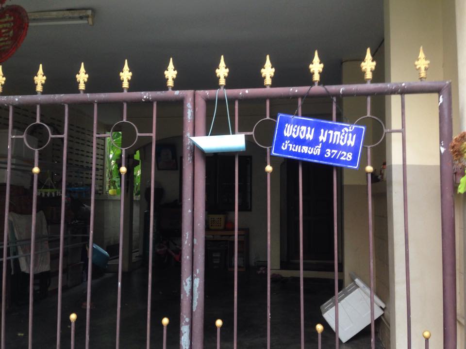 26 ส.ค. 58 ที่ผ่านมา ผู้สื่อข่าวสำนักข่าวอิศราwww.isranews.org เดินทางไปยังบ้านเลขที่ดังกล่าวเพื่อสัมภาษณ์ น.ส.อัญมณี พบว่า ตั้งอยู่ในหมู่บ้านเลิศอุบล 4 รุ่น 2 (ซ.นาคนิวาส 48 แยก 14-10) ซึ่งตรงกับคำยืนยันของเจ้าหน้าที่ไปรษณีย์รายหนึ่ง มีลักษณะเป็นทาวน์เฮาส์ 2 ชั้น ขนาด 19 ตร.วา(หลังหัวมุม) มีพื้นที่ข้างบ้าน ปลูกต้นมะยม และเลี้ยงพลูด่าง ปรากฏเลขที่ตั้งชัดเจน พร้อมกับป้ายชื่อ ระบุว่า “พยอม มากยิ้ม” ภายในบ้านมีจักรยานจอดอยู่ 1 คัน ราวตากผ้า กล่องโฟมสำหรับแช่เย็น และลิ้นชักขนาด 4 ชั้น 2 ตัว