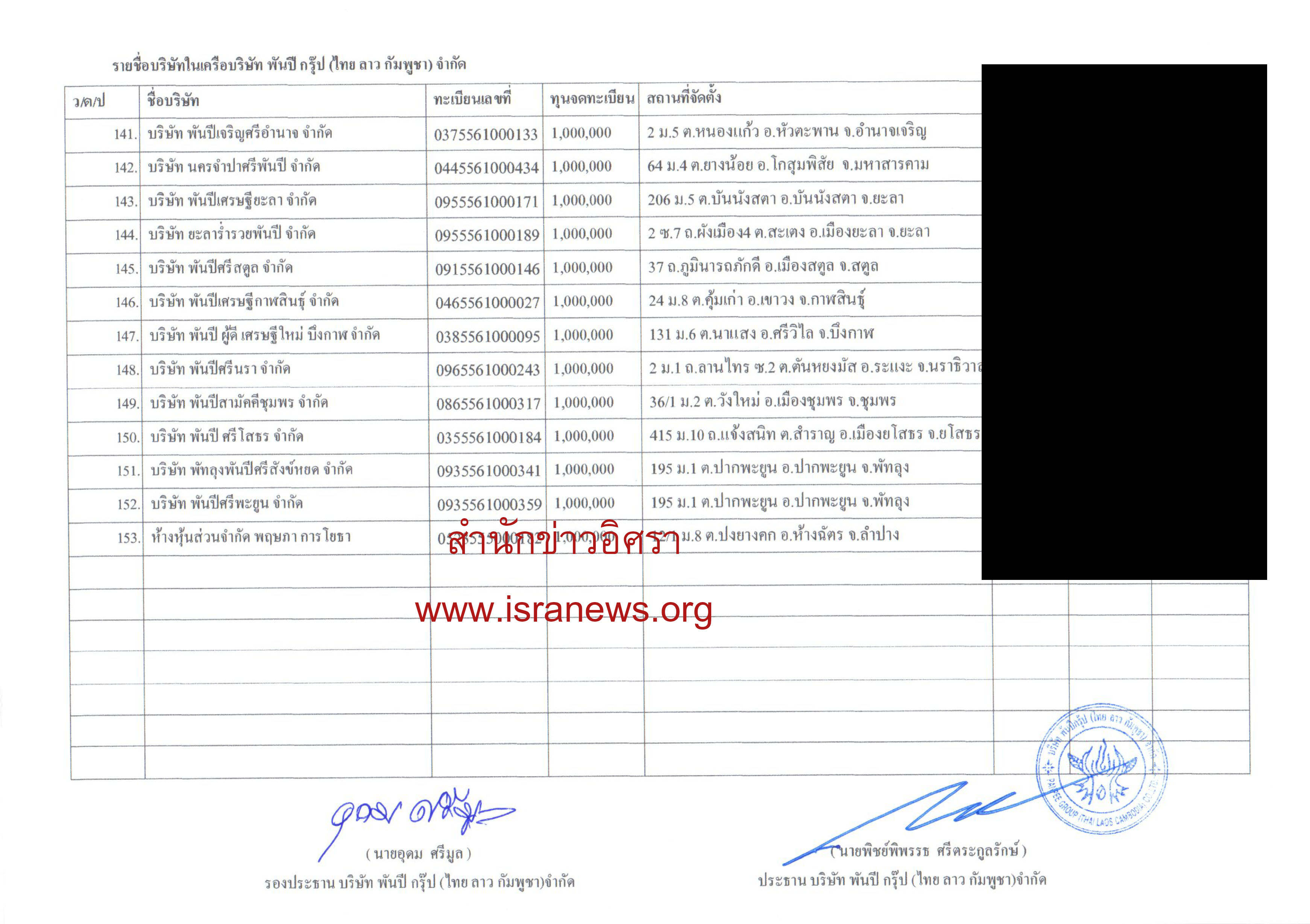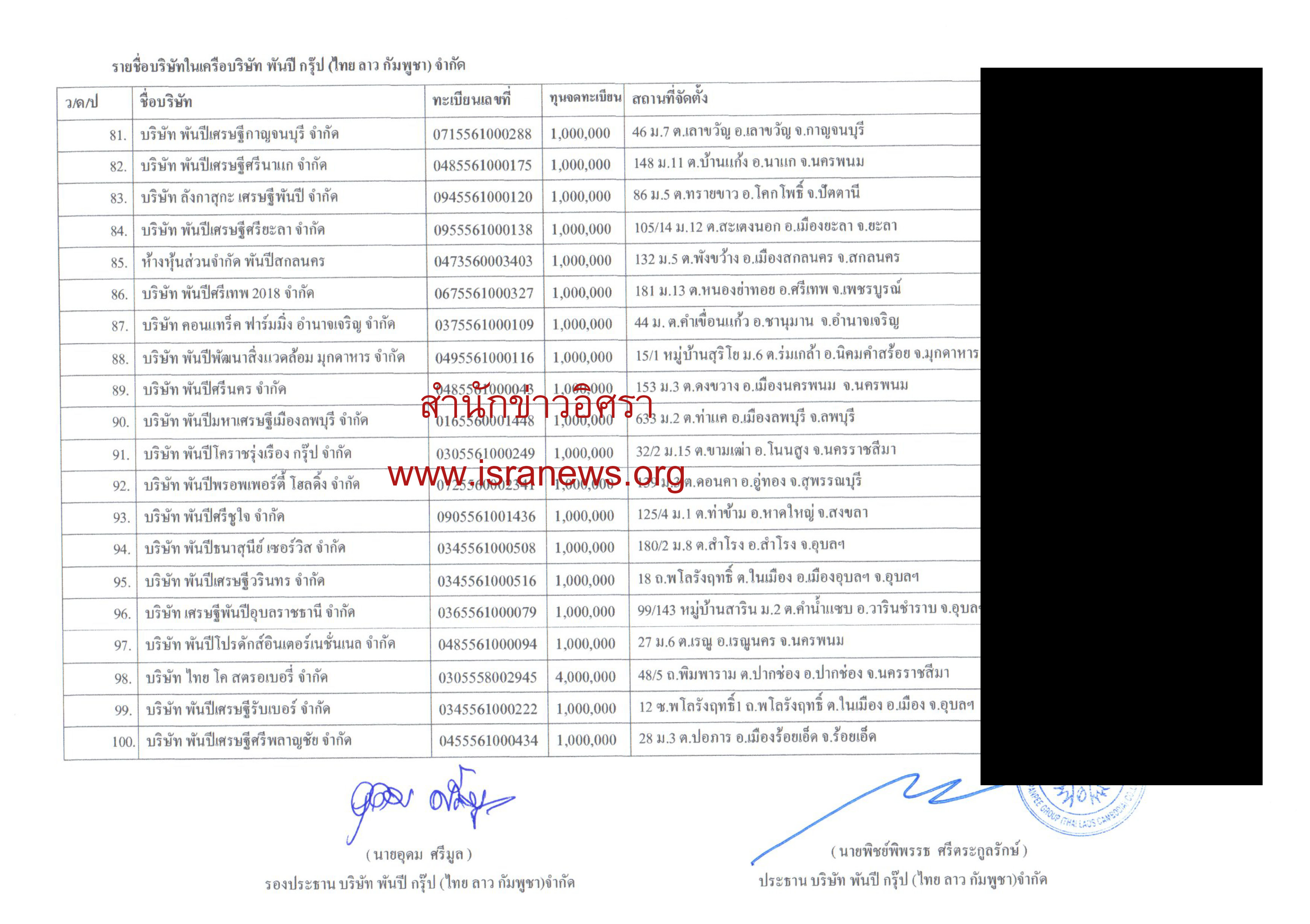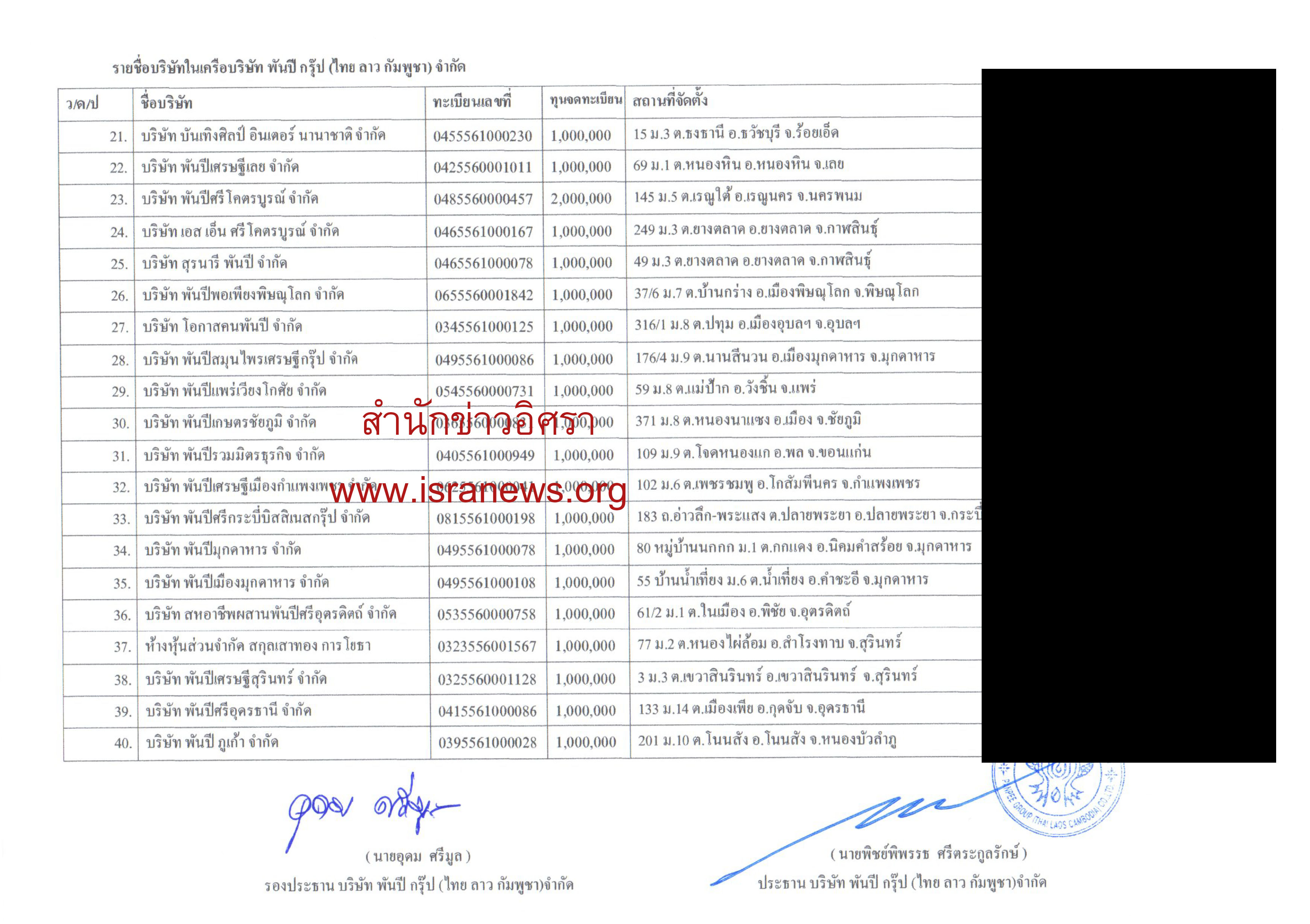 (ข้อมูลบริษัทหมายเลข 121 -140 ไม่สมบูรณ์)