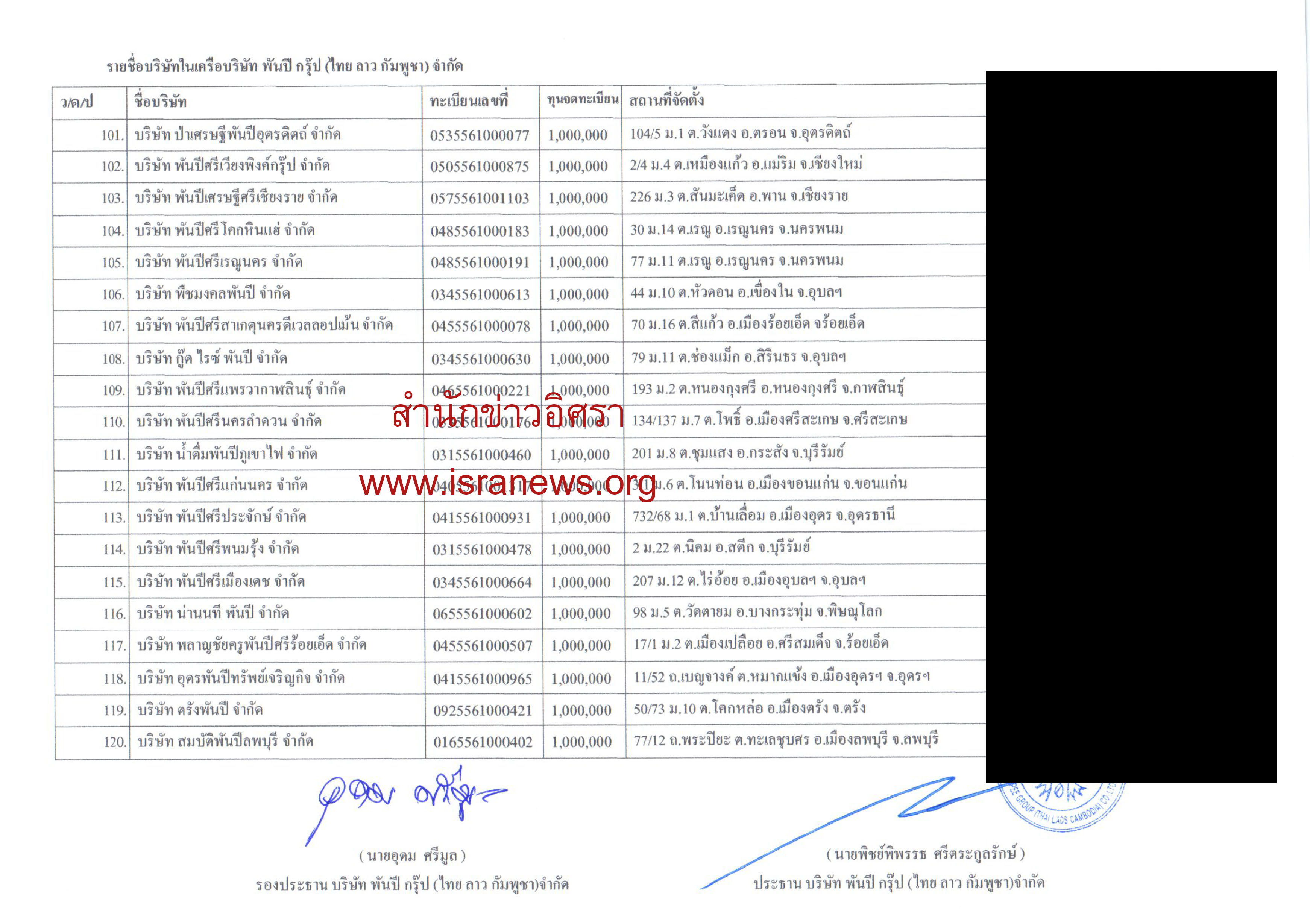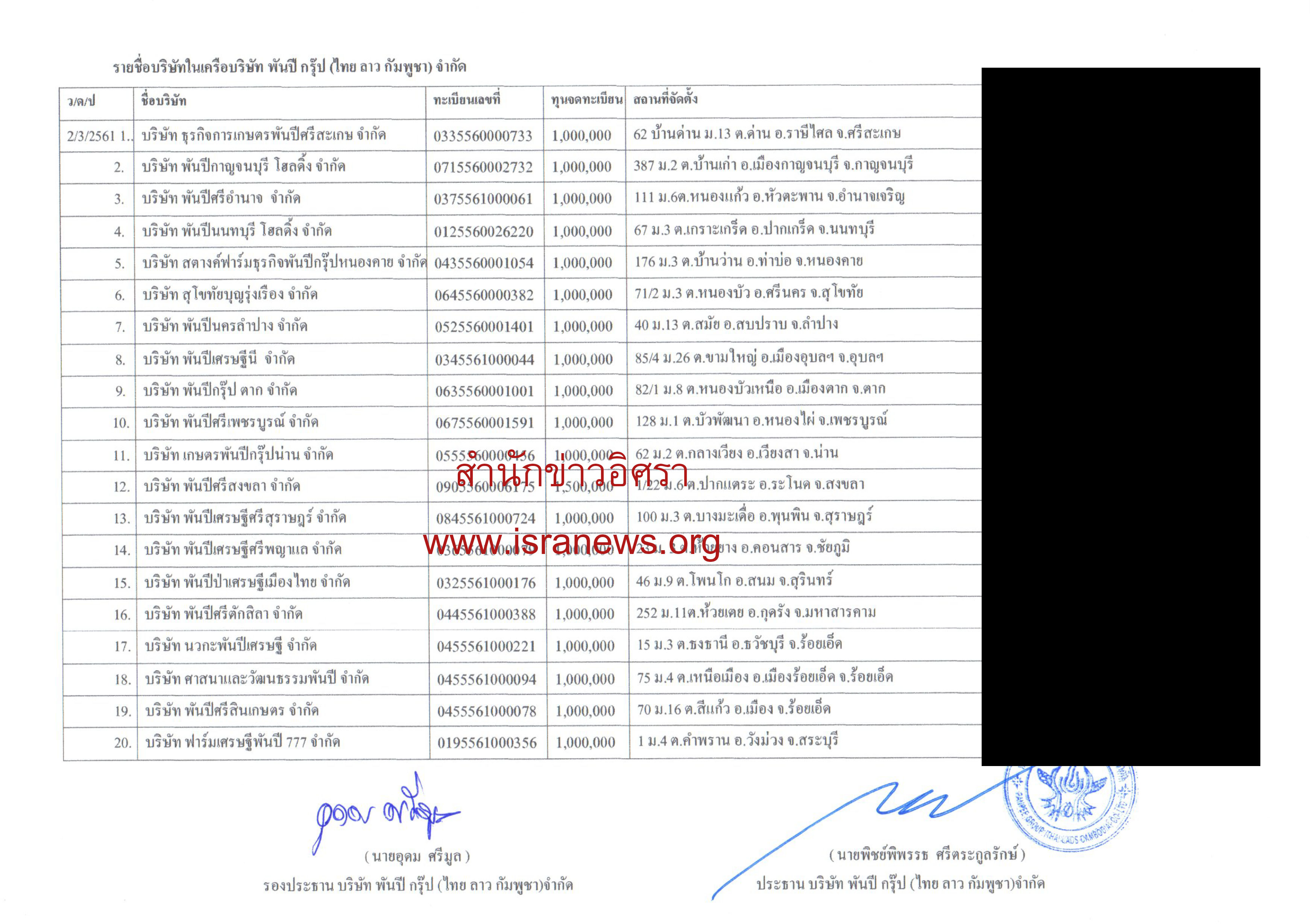 "...ล่าสุดสำนักข่าวอิศรา ได้รับแจ้งข้อมูลเกี่ยวกับแผนผังเครือข่ายพันปี กรุ๊ปฯ ที่มีการนำเสนอเรื่องให้ที่ประชุมร่วมหน่วยงานที่เกี่ยวข้องเมื่อวันที่ 14 มิ.ย.2561 เป็นทางการ พบว่า การดำเนินงานของบริษัทฯ มีการแต่งตั้งผู้บริหารออกเป็น 3 ส่วน คือ ผู้บริหารระดับสายสินค้าเกษตร , ผู้บริหารระดับภาค และผู้บริหารระดับจังหวัด โดยในส่วนของผู้บริหารระดับสายสินค้าเกษตร แยกตามชนิด ได้แก่ ข้าว พืช ปลูกป่า ปศุสัตว์ , ผู้บริหารระดับภาค แยกเป็น อีสาน เหนือ กลาง ใต้ ตะวันออก , ผู้บริหารระดับจังหวัด แยกตามประเภทขององค์กร ได้แก่ สหกรณ์ ชมรม มูลนิธิ กลุ่มเกษตรกร บริษัท วิสาหกิจชุมชน สมาคม พรรคการเมือง..."