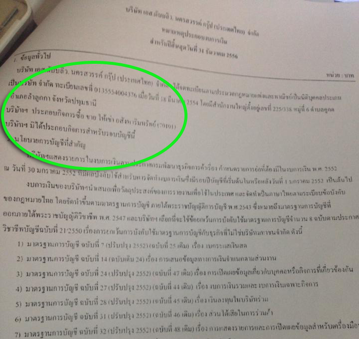 ขณะที่ผู้สอบบัญชี ระบุไว้ในหมายเหตุงบการเงินว่า ในปี 2554 และปี 2556 ล่าสุด บริษัทฯ มิได้ประกอบกิจการ
