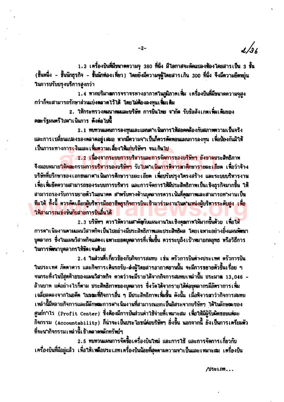 ทั้งนี้ให้กระทรวงคมนาคม และบริษัท การบินไทยฯ รับข้อสังเกตไปดำเนินการ สรุปได้ ดังนี้