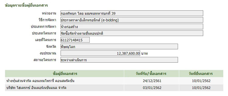 เจาะขั้นตอนจัดซื้อจัดจ้างซ่อมแซมอาคาร มทบ.39 และหน่วยงานในพื้นที่ จว.พ.ล. ค่ายสมเด็จพระเอกาทศรถ หจก.คอนเทมโพรารีฯ ยื่นซองต่ำกว่าราคากลาง 22,600 บาท คว้างาน บ.ไฮเดรกซ์ฯ เจ้าเดิมคู่เทียบ