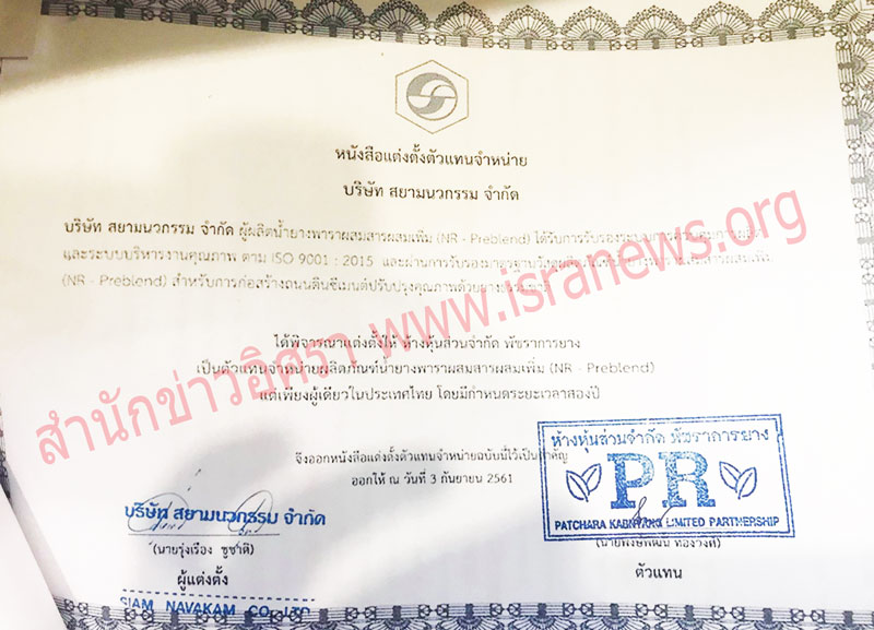 การทำธุรกิจขายสารผสมเพื่อนำไปใช้ทำถนนยางพารา ของ บริษัทเอกชน 3 ราย คือ บริษัท โพลิเมอร์ อินโนเวชั่น จำกัด บริษัท สยามนวกรรม จำกัด และ บริษัท ไทย อีลาสโตพาร์ท จำกัด ซึ่งมีความสัมพันธ์เชื่อมโยงเป็นกลุ่มเดียวกัน ที่ผ่านการรับรองจากคณะกรรมการพิจารณาการรับรองมาตรฐานวัสดุน้ำยางพาราผสมสารผสมเพิ่มและสารผสมเพิ่ม สำหรับการก่อสร้างถนนดินซีเมนต์ปรับปรุงคุณภาพด้วยยางธรรมชาติ ของ กระทรวงเกษตรและสหกรณ์ ตามนโยบายแก้ไขปัญหาราคายางพาราตกต่ำที่ใช้งบประมาณวงเงินนับหมื่นล้านบาทของรัฐบาล พล.อ.ประยุทธ์ จันทร์โอชา นายกรัฐมนตรี โดยการสนับสนุนให้มีการนำยางไปทำถนนยางพาราขององค์กรปกครองส่วนท้องถิ่น กำลังถูกจับตามองมากขึ้น