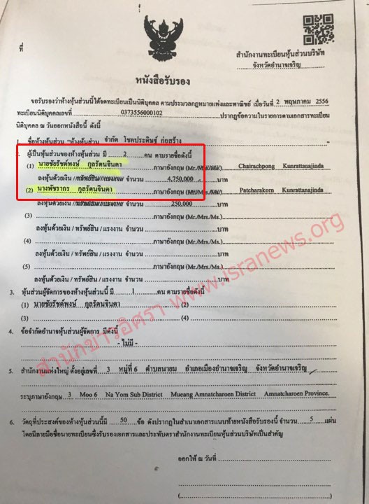โดยนายชัยรัชต์พงษ์ กุลรัตนจินดา ผู้แจ้งจองชื่อ กรรมการผู้มีอำนาจ ผู้ถือหุ้นใหญ่ บริษัท ไทย ภัสนันท์ พร๊อพเพอร์ตี้ จำกัด เป็นผู้แจ้งจองชื่อจดทะเบียนจัดตั้ง หจก. พัชราการยาง และเป็นหุ้นส่วนผู้จัดการ ห้างหุ้นส่วนจำกัด (หจก.) โชคประดิษฐ์ก่อสร้าง (ช่วงก.ค.2561)