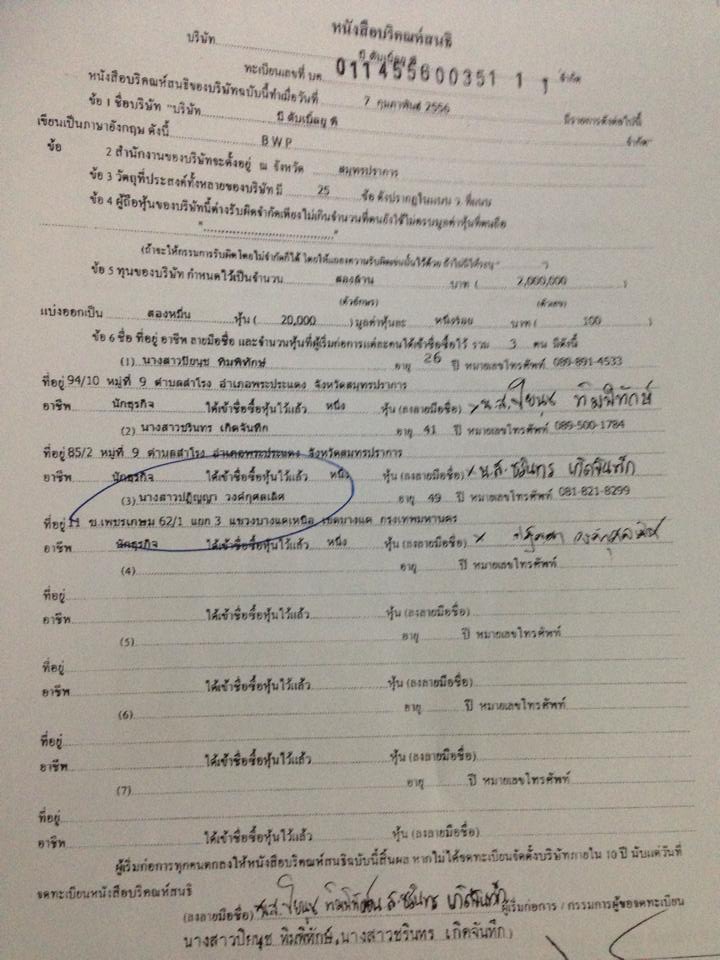 จากการตรวจสอบข้อมูลยังพบว่า ภายหลังจากที่บริษัท บี ดับเบิ้ลยู พี จำกัด ได้รับอนุญาตให้จดทะเบียนจัดตั้งอย่างเป็นทางการเมื่อวันที่ 11 กุมภาพันธ์ 2556