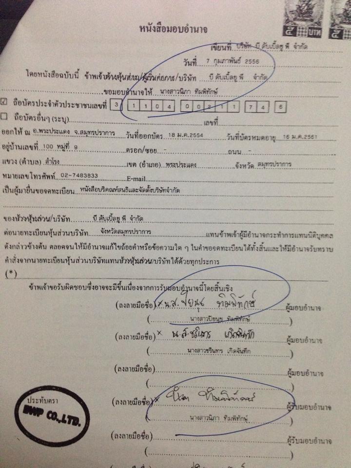 3. ขณะที่ น.ส.นิภา ทิมพิทักษ์ ปรากฎรายชื่อเป็นผู้ได้รับมอบอำนาจให้มายื่นขอจดทะเบียนหนังสือบริคณห์และจัดตั้งบริษัท บี ดับเบิ้ลยู พี จำกัด โดยได้รับมอบอำนาจจาก น.ส.ปิยนุช ทิมพิทักษ์