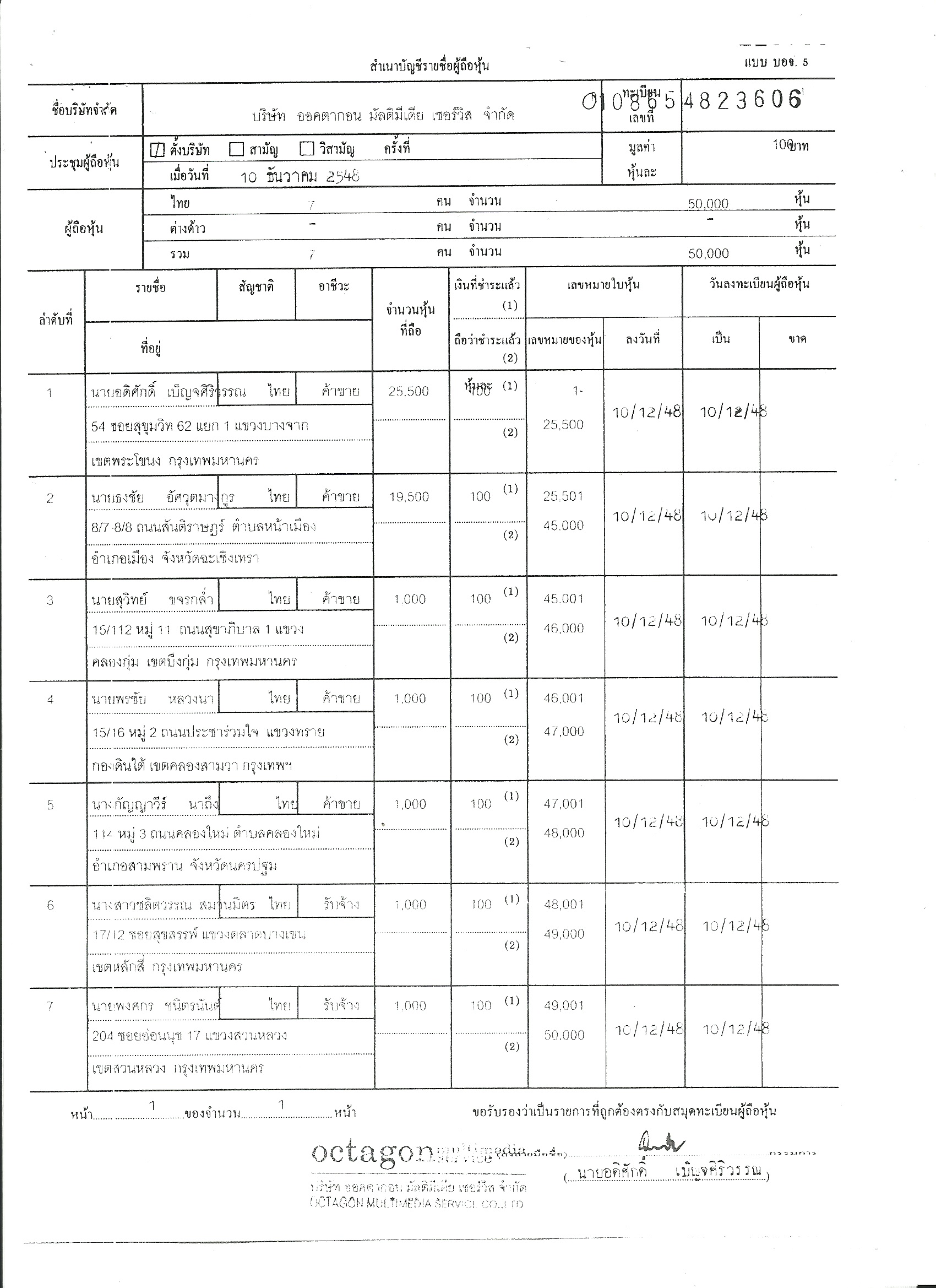 บริษัท ออคตากอน มาร์เก็ตติ้ง เซอร์วิส จำกัด(ชื่อเดิม ออคตากอน มัลติมีเดีย เซอร์วิส จำกัด) |