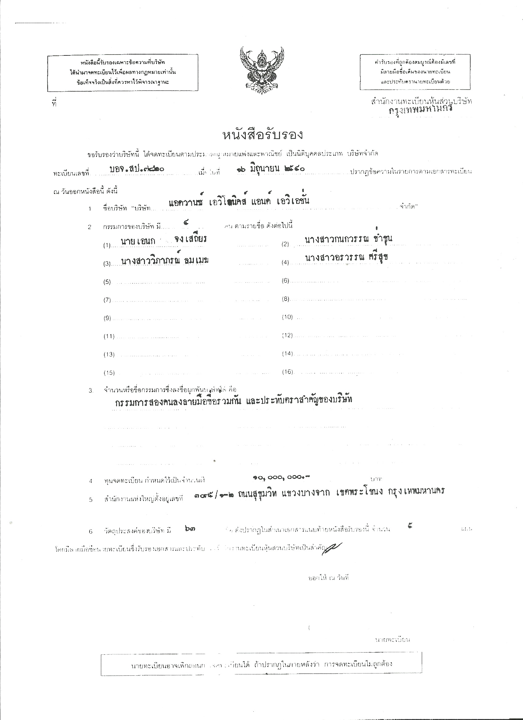 28 มี.ค.46 จดทะเบียนเพิ่มจำนวนกรรมการเป็น 10 คนคือ