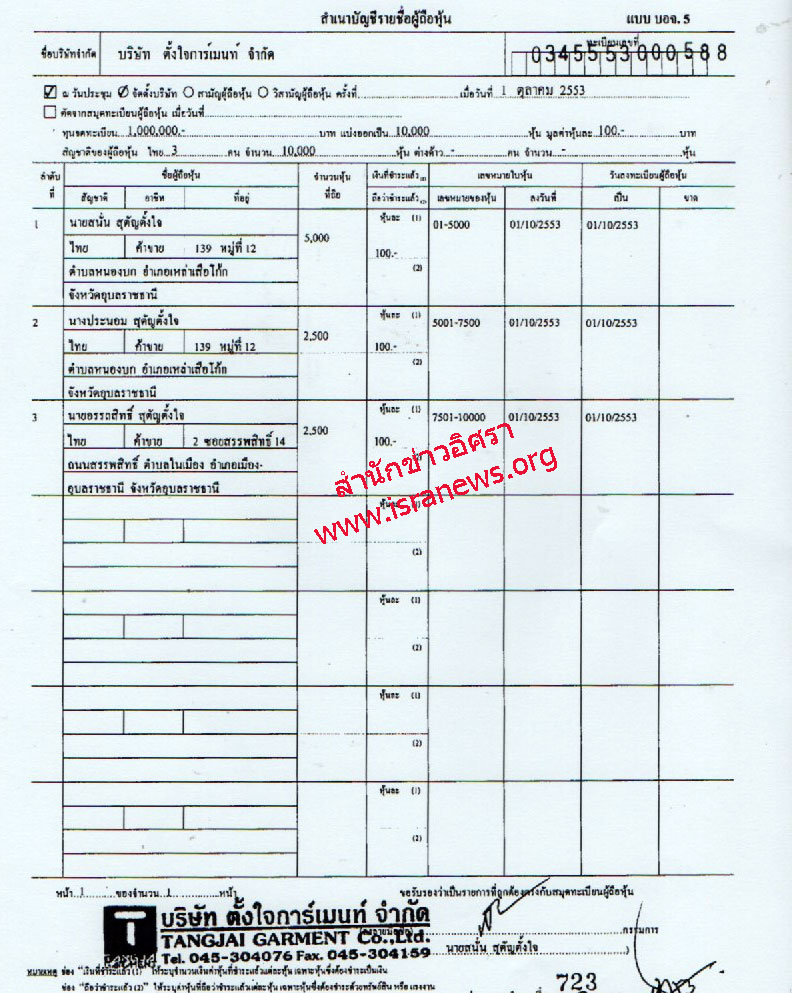 | บริษัท ตั้งใจการ์เมนท์ จำกัด | 21/03/2557 |