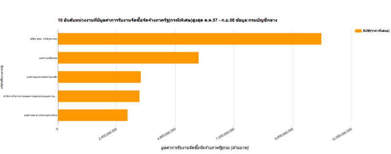 บริษัทที่ได้งานจัดซื้อ จัดจ้าง จากหน่วยงานรัฐผ่านวิธีการ กรณีพิเศษ ช่วง ต.ค. 57 - ก.ค. 58 เป็นมูลค่าสูงสุด 5 อันดับแรกมีดังนี้