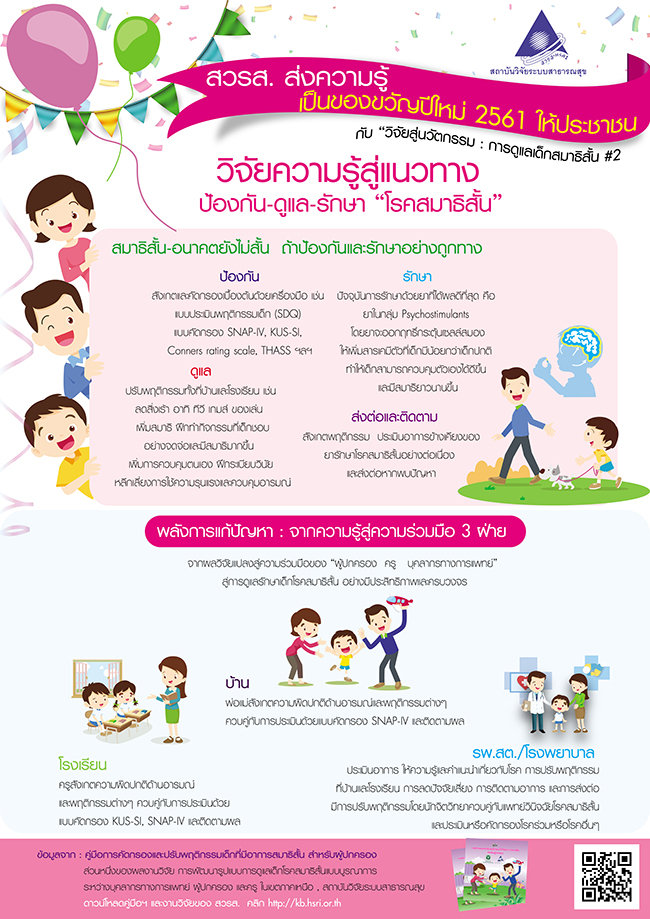 หรือสามารถค้นหาและดาวน์โหลดสื่อข้อมูลความรู้เพิ่มเติมได้ทางเว็ปไซต์ www.adhdthailand.com และ www.hsri.or.th