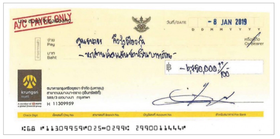 3.3. เช็คที่นำมาแสดง ทำให้สงสัยว่า “ทำย้อนหลัง” เพราะ มีการถ่ายรูปไว้ โดยไม่มีตราประทับของธนาคาร เพราะ ถ้านำเข้าบัญชีธนาคารจะต้องมีตราประทับธนาคารผู้รับ