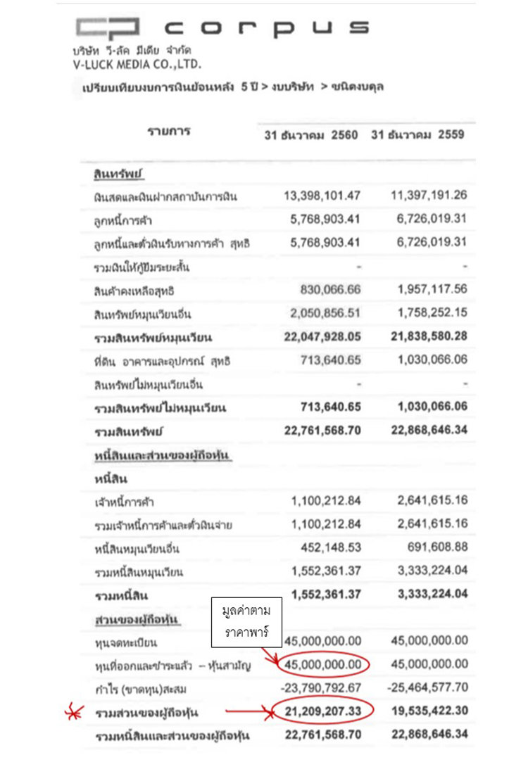 3.2. แต่ข้อสงสัยคือ หุ้นละ 10 บาท(ราคาพาร์) ทั้งๆที่ทั้งบริษัททุนจดทะเบียนคือ 45,000,000 บาท แต่ขาดทุนต่อเนื่อง จนสิ้นปี 2560 ราคาเหลือไม่ถึงครึ่ง คือ เหลือ 21,209,207.33 บาท