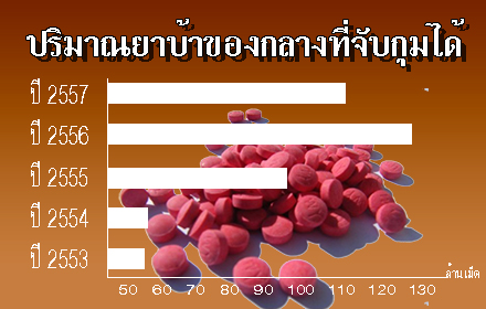2 กราฟฟิกแสดงปริมาณยาบ้าของกลางที่จับกุมได้ในประเทศไทย