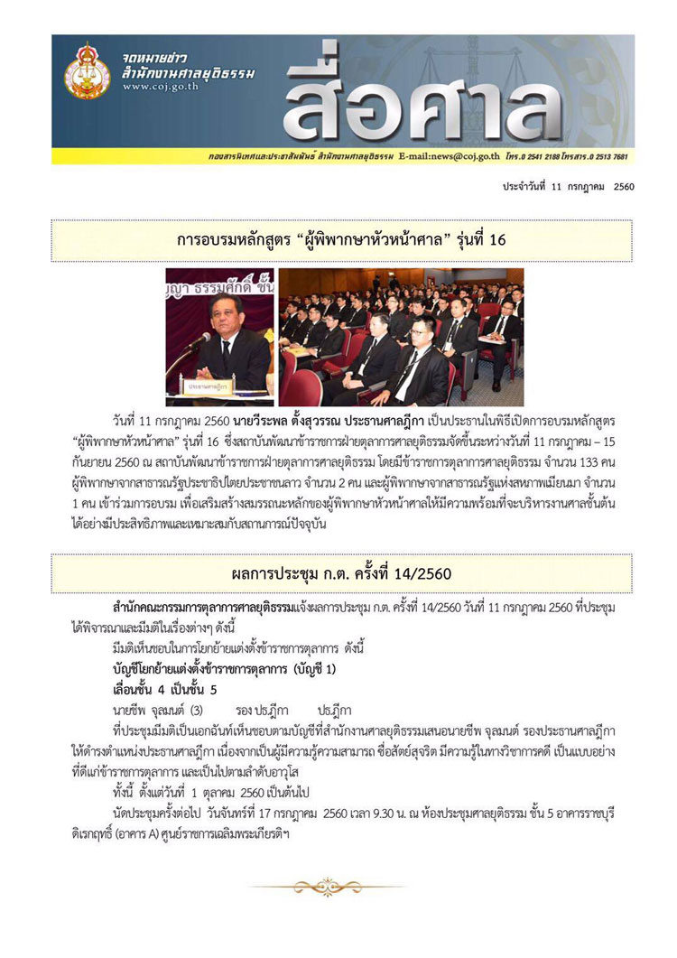 สะพัด! มติ ก.ต. สั่งเด้ง 'ศิริชัย' พ้นเก้าอี้ ปธ. ศาลอุทธรณ์ นั่งที่ปรึกษาปธ.ศาลฎีกาแทน แถมตั้งกก.สอบสืบปมถูกร้องเพิกถอนโอนสำนวนซ้ำ -เห็นชอบชื่อ 'ชีพ จุลมนต์' ปธ.ศาลฎีกา คนใหม่ มีผล 1 ต.ค.60 นี้