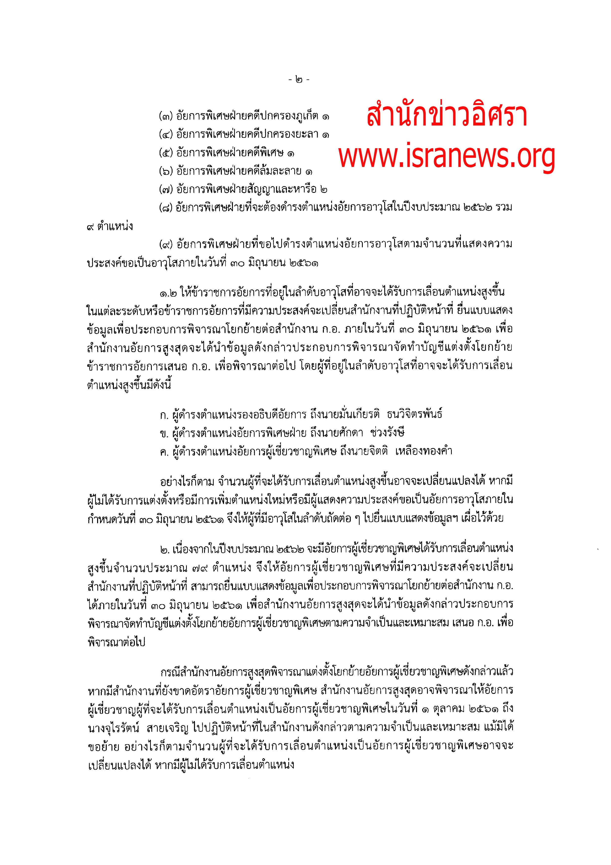 ส่วนกรณีสำนักงานอัยการสูงสุดพิจารณาแต่งตั้งโยกย้ายอัยการผู้เชี่ยวชาญพิเศษดังกล่าวแล้ว หากมีสำนักงานที่ยังขาดอัตราอัยการผู้เชี่ยวชาญพิเศษ สำนักงานอัยการสูงสุดอาจพิจารณาให้อัยการผู้เชี่ยวชาญ ผู้ที่จะได้รับการเลื่อนตำแหน่งเป็นอัยการผู้เชี่ยวชาญพิเศษในวันที่ 1 ต.ค. 2561 ถึงนางจุไรรัตน์ สายเจริญ ไปปฏิบัติหน้าที่ สำนักงานดังกล่าวตามความจำเป็นและเหมาะสม แม้มิได้ขอย้าย แต่จำนวนผู้ที่จะได้รับการเลื่อนตำแหน่งผู้เชี่ยวชาญพิเศษอาจจะเปลี่ยนแปลงได้ หากมีผู้ไม่ได้รับการเลื่อนตำแหน่ง