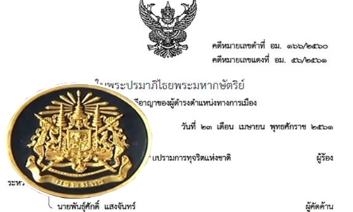 จงใจไม่ยื่นบัญชีฯกรณีพ้นจากตำแหน่ง และกรณีพ้นจากตำแหน่งมาแล้วเป็นเวลาหนึ่งปี ในการดำรงตำแหน่งรองนายก อบต.ม่วง ห้ามมิให้ผู้คัดค้านดำรงตำแหน่งทางการเมืองหรือดำรงตำแหน่งใดในพรรคการเมืองเป็นเวลาห้าปีนับแต่วันที่ 24 ส.ค.2555 ซึ่งเป็นวันที่ผู้คัดค้านพ้นจากตำแหน่ง กับมีความผิดตามพระราชบัญญัติประกอบรัฐธรรมนูญว่าด้วยการป้องกันและปราบปรามการทุจริต พ.ศ. 2542 มาตรา 119 ฐานเป็นเจ้าหน้าที่ของรัฐจงใจไม่ยื่นบัญชีแสดงรายการทรัพย์สินและหนี้สินและเอกสารประกอบ ต่อคณะกรรมการ ป.ป.ช. ภายในเวลาที่กฎหมายกำหนดกรณีพ้นจากตำแหน่งมาแล้วเป็นเวลาหนึ่งปี จำคุก 2เดือน และปรับ 8,000 บาท ผู้คัดค้านให้การรับสารภาพ เป็นประโยชน์แก่การพิจารณา มีเหตุบรรเทาโทษ ลดโทษให้กึ่งหนึ่ง คงจำคุก 1 เดือน และปรับ 4,000 บาท ไม่ปรากฏว่าผู้คัดค้านเคยได้รับโทษจำคุกมาก่อน โทษจำคุกจึงให้รอการลงโทษไว้ มีกำหนด 1 ปี (คดีหมายเลขแดงที่ อม.57/2561/23 เม.ย.2561)