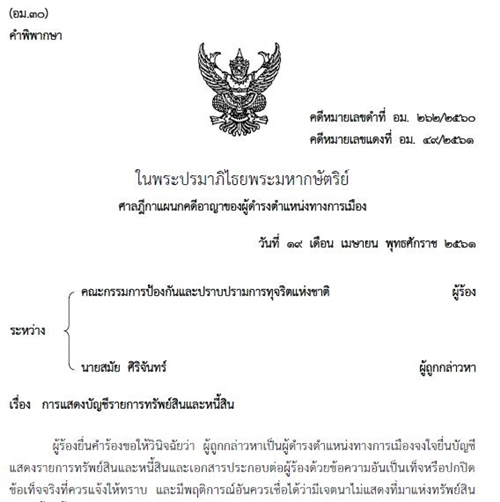สำนักข่าวอิศรา www.isranews.org รายงานว่า เมื่อวันที่ 19 เม.ย. 2561 ศาลฎีกาแผนกคดีอาญาของผู้ดำรงตำแหน่งทางการเมืองมีคำพิพากษาให้นักการเมือง 2 รายมีความผิดในคดีจงใจยื่นบัญชีแสดงรายการทรัพย์สิน และหนี้สินและเอกสารประกอบต่อคณะกรรมการป้องกันและปราบปรามการทุจริตแห่งชาติ (คณะกรรมการ ป.ป.ช.) ด้วยข้อความอันเป็นเท็จหรือปกปิดข้อเท็จจริงที่ควรแจ้งให้ทราบ ห้ามดำรงตำแหน่งทางการเมืองเป็นเวลา 5 ปี ปรับเงิน คนละ 4,000-8,000 บาท จำคุก 1-2 เดือน รอลงโทษจำคุก 1 ปี ดังนี้