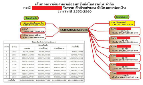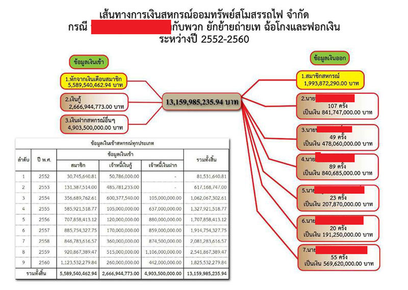 กลุ่มธรรมาภิบาล ยื่นหลักฐานใหม่ 'บิ๊กตู่' สอบคดีทุจริตสหกรณ์ออมทรัพย์สโมสรรถไฟ โชว์ผังเส้นทางเงิน 1.3 หมื่นล้าน ก่อนอดีตผู้บริหาร-พวก ยักย้ายถ่ายเทออก 343 ครั้ง ตัวเลขเสียหายจริงกว่า 3พันล้าน เผยมีบิ๊กขรก.เอี่ยว สมรู้ร่วมคิด