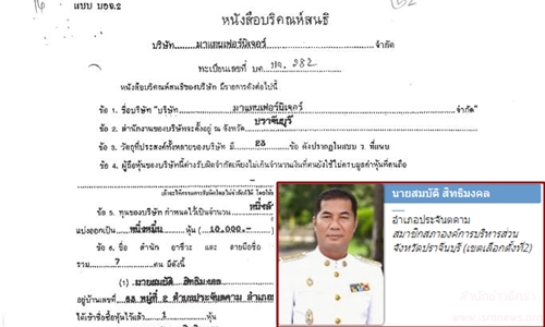 ต่อมา สำนักข่าวอิศรา www.isranews.org ตรวจสอบการจดทะเบียน บริษัท มาแทนเฟอร์นิเจอร์ จำกัด พบว่า จดทะเบียนวันที่ 19 ธ.ค.2537 ทุน 1 ล้านบาท ประกอบธุรกิจรับทำเฟอร์นิเจรอ์และรับเหมาก่อสร้าง ที่ตั้งเลขที่ 63 หมู่ที่ 2 ต.ประจันตคาม อ.ประจันตคาม จ.ปราจีนบุรี มีนายสมบัติ สิทธิมงคล เป็นกรรมการผู้ริเริ่มจดทะเบียนและถือหุ้นใหญ่ ต่อมาวันที่ 24 ต.ค. 2556 ได้จดทะเบียนให้ นายวราพงษ์ ขาวพราย เป็นกรรมการ และถือหุ้นใหญ่ กระทั่ง 3 มิ.ย. 2557 จดทะเบียนเปลี่ยนแปลงอีกครั้ง นายไพบูลย์ ศรีทอง เป็นกรรมการ และ ถือหุ้นใหญ่