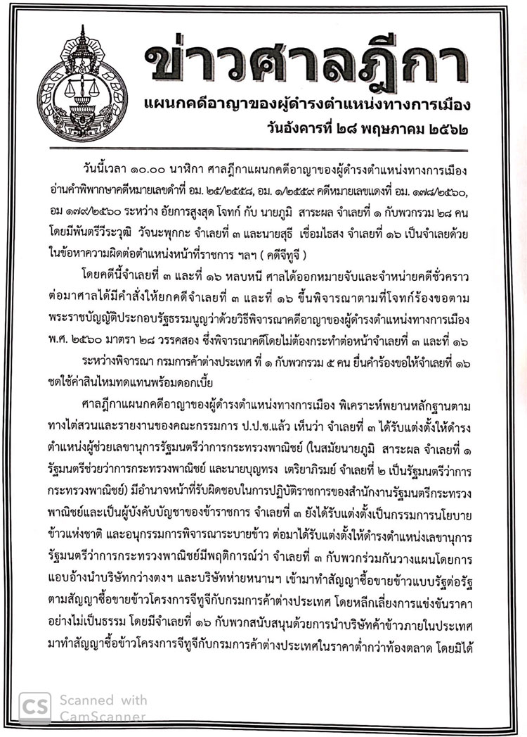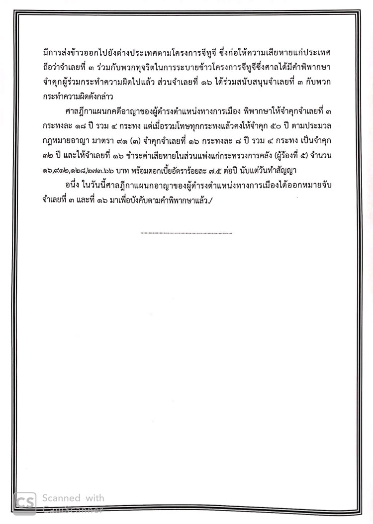• ศาลฎีกาฯพิพากษาคุก‘หมอโด่ง’50 ปี-‘สุธี’ 32 ปี ทุจริตข้าวจีทูจี-หลบหนีสั่งออกหมายจับ