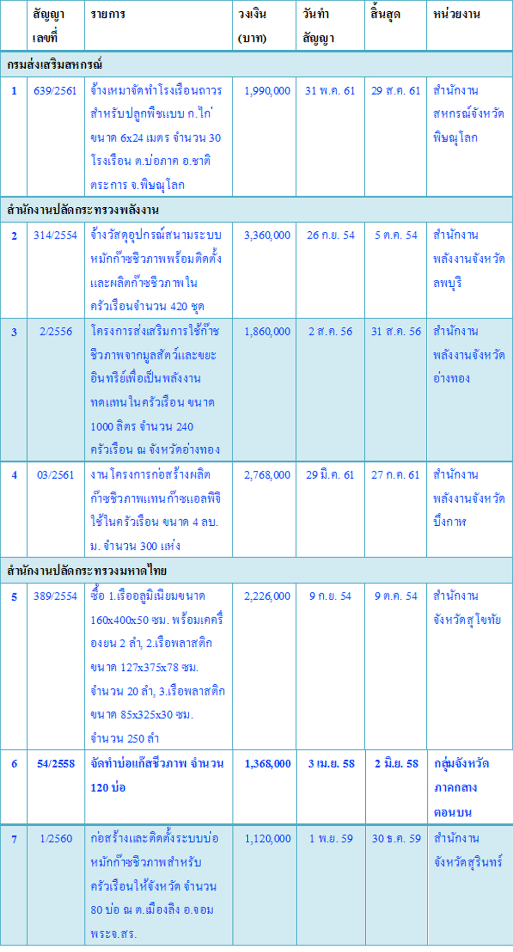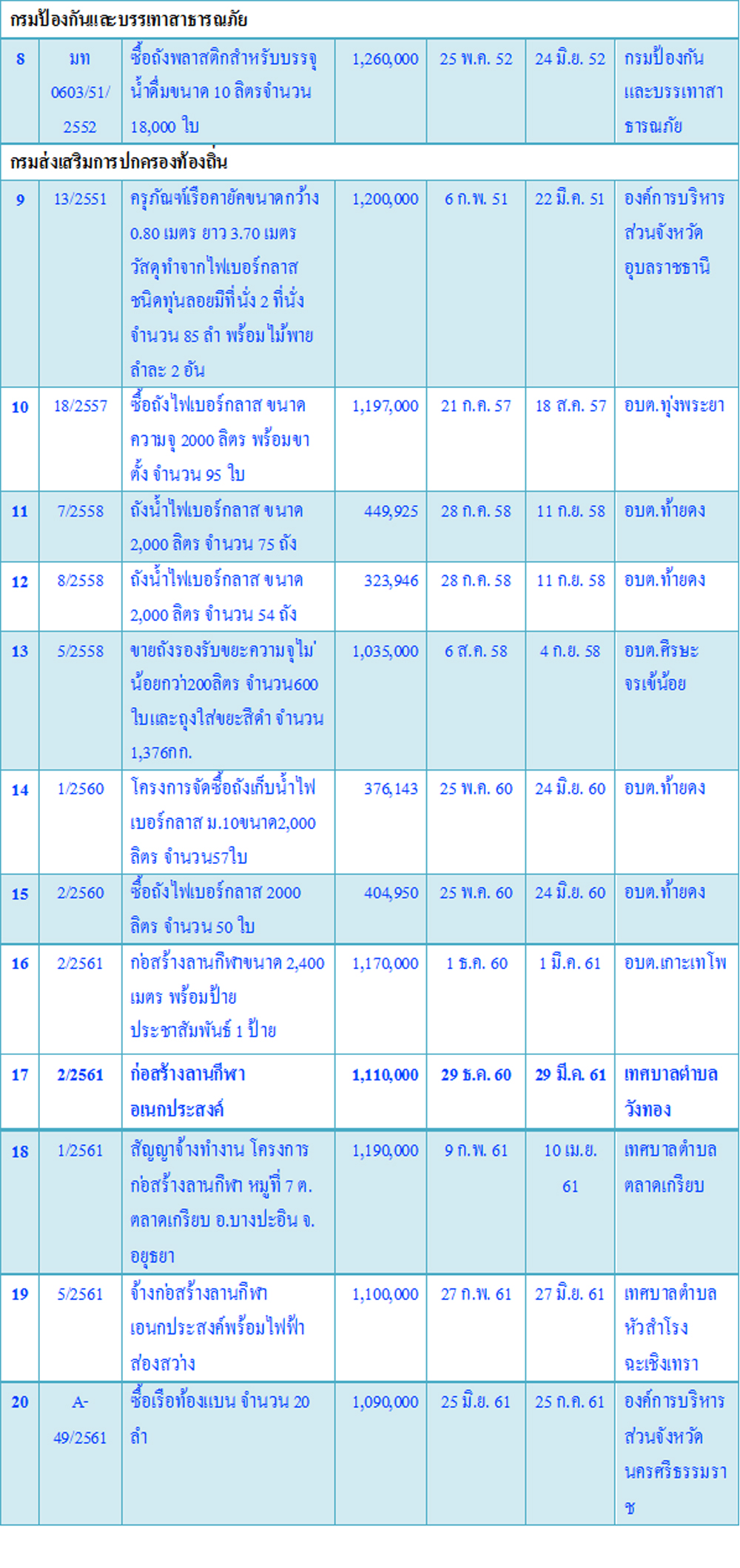 หจก.วศินคอนส์ทรัคชัน เป็นคู่สัญญากับหน่วยงานรัฐ ในช่วงปี 2551-2561 ทั้งสิ้น 20 สัญญา มูลค่ารวม 26,598,964 บาท (ดูตาราง)