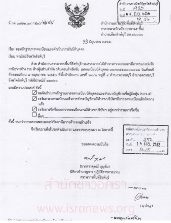 สรรพากรส่งหนังสือพาณิชย์จังหวัด 8 ฉบับ ขอหลักฐานจดทะเบียนนิติบุคคล หจก.วศินฯ ‘คมสันต์’ นายกเทศมนตรี ต.พรหมบุรี สิงห์บุรี ตั้งแต่ปี 2558 ค้างภาษี ‘อิศรา’เจาะงบการเงินพบแจ้งรายได้ปี 2561 กว่า 42 ล. คู่สัญญาจัดซื้อหน่วยงานรัฐ 26.5 ล. ท้องถิ่นอื้อ