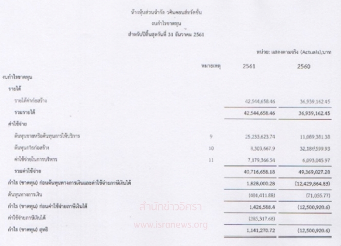 สำนักข่าวอิศราตรวจสอบพบว่า หจก.วศินคอนส์ทรัคชัน แจ้งงบการเงินรอบปี 2557-2561 รายได้รวม 36,880,548 บาท - 42,544,658.46 บาท เฉพาะรอบปี 2562 กำไรสุทธิ 1,141,270.72 บาท สินทรัพย์ 20,921,561.85 บาท หนี้สิน 52,570,834.96 บาท ขาดทุนสะสม 33,749,273.11 บาท