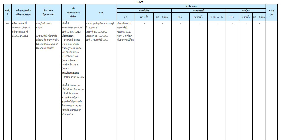 ป.ป.ช. แพร่ผลคดีชี้มูลความผิด 'สุวิทย์ มาตระ' อดีตนายก อบต.ห้วยส้ม จว.เลย ปกปิดประกาศสอบราคาก่อสร้าง 6 โครงการ ล่าสุด ศาลอาญาคดีทุจริตประพฤติมิชอบภาค 4 สั่งจำคุก 1 ปี ส่วน 'อนวัทย์หรือนิติชัย แก้วธานี' อดีตหน.ส่วนโยธา จำเลยอีกราย ไม่มารายงานตัว ถูกออกหมายจับแล้ว