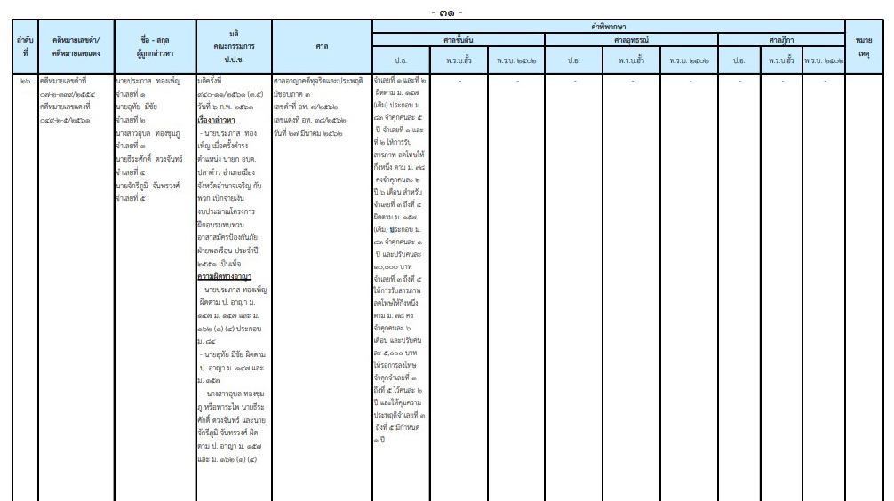 นายประภาส ทองเพ็ญ และ นายอุทัย มีชัย ผิดตามมาตรา 147 ประกอบมาตรา 83 จำคุกคนละ 5 ปี จำเลยทั้ง 2 ให้การรับสารภาพลดโทษให้กึ่งหนึ่ง ตามมาตรา 78 คงจำคุกคนละ 2 ปี 6 เดือน