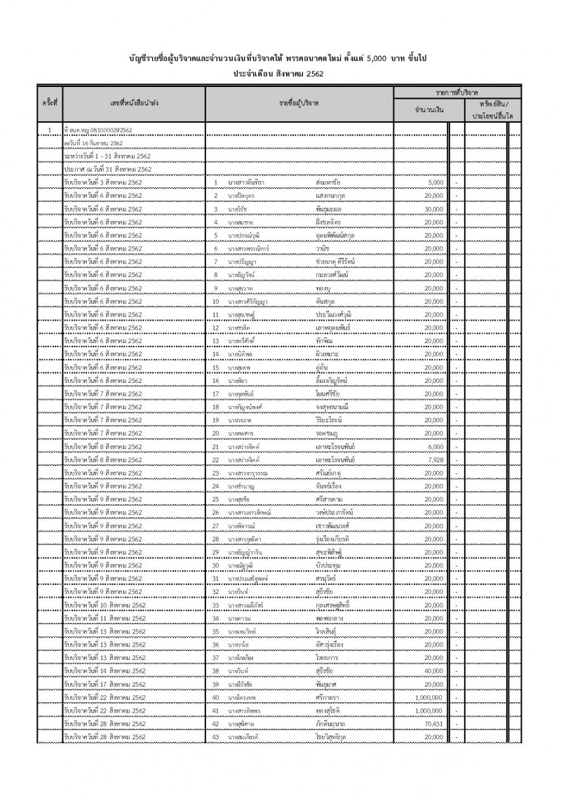 จากกรณีสำนักงานคณะกรรมการการเลือกตั้ง (กกต.) เผยแพร่บัญชีรายชื่อผู้บริจาคและจำนวนเงินที่บริจาคให้แก่พรรคการเมือง โดยสำนักข่าวอิศรา www.isranews.org นำเสนอข้อมูลระหว่างเดือน ต.ค. 2561-มิ.ย. 2562 ผู้บริจาคในส่วนของพรรคพลังประชารัฐ พรรคชาติพัฒนา พรรคไทยรักษาชาติ และพรรคอนาคตใหม่ไปแล้วนั้น