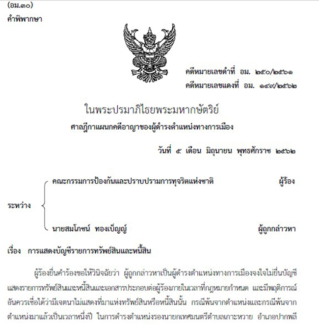 ศาลฎีกาฟันนายก อบต.เทพมงคล จ.พระนครศรีฯ ยื่นบัญชีเท็จ -2 รอง ยโสฯ ปัตตานี ไม่ยื่น
