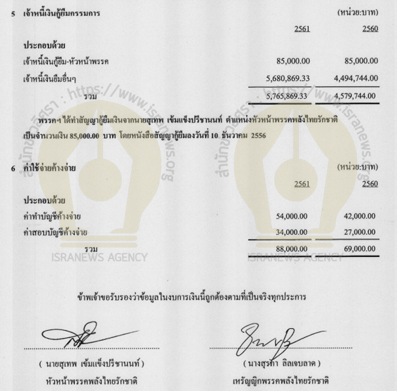 1.พรรคพลังศรัทธา แจ้งในหมายเหตุงบการเงินมีหนี้สินหมุนเวียน เป็นเงินกู้ยืมระยะสั้น 300,000 บาท