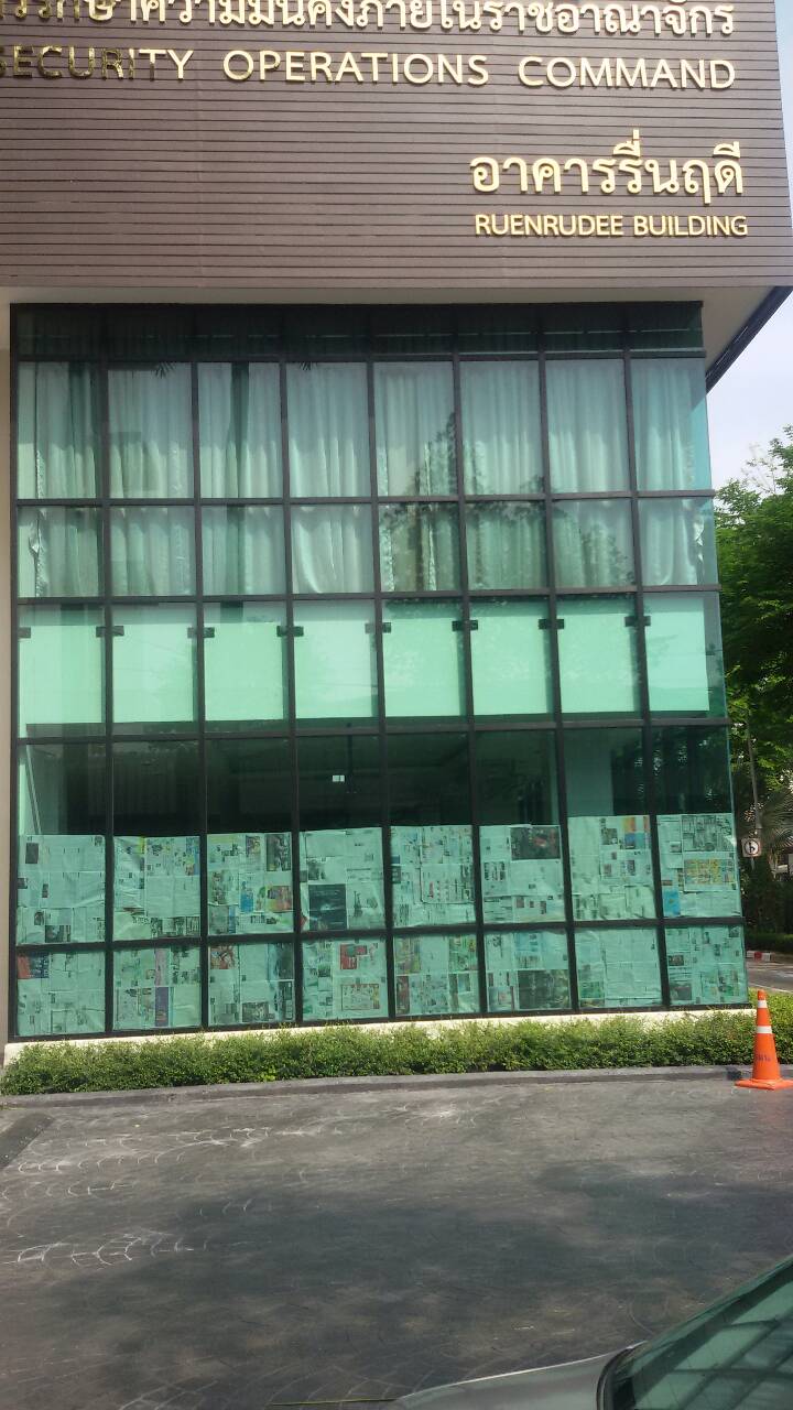 ฮือฮากระดาษหนังสือพิมพ์พรึบ!ปิดกระจกตึก กอ.รมน.ขนเฟอร์นิเจอร์คืนผู้รับเหมา