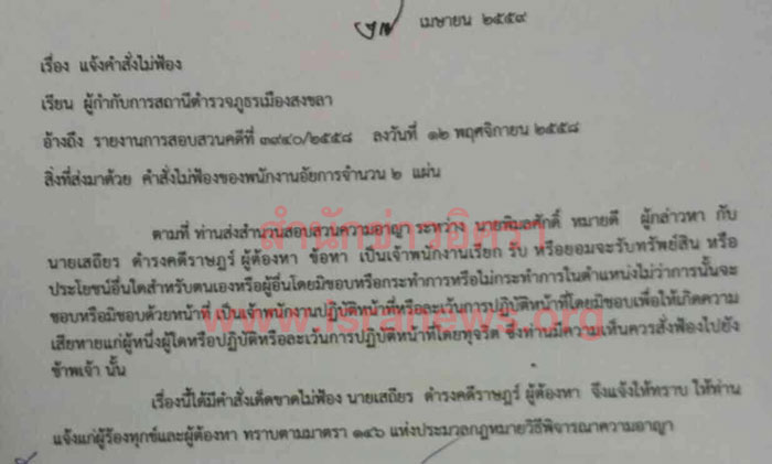 อัยการไม่ฟ้อง ผอ.สำนักพุทธฯสงขลา คดีเรียกรับเงินจากวัด 3.2 ล้าน หลัง ป.ป.ท.-ป.ป.ช.-สตง.ตร. บุกจับกุมช่วงปี’58 อ้างพยานหลักฐานไม่พอ รอง ผอ.สำนักพุทธฯ การันตีเอาเงินไปแบ่งจ่ายวัดอื่นจริง