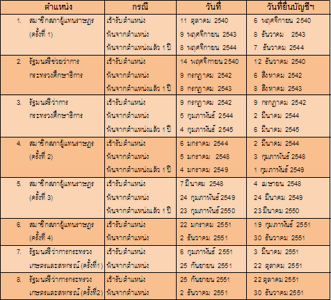 3.1 กรณีเข้ารับตำแหน่ง เมื่อวันที่ 9 กรกฎาคม 2542