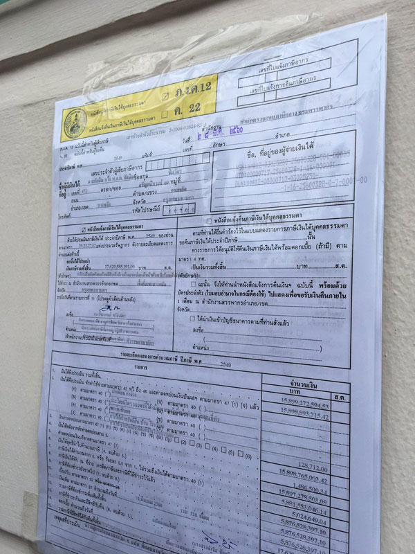 เจ้าหน้าที่กรมสรรพากร นำหนังสือแจ้งภาษีเงินได้บุคคลธรรมดา (ภ.ง.ด.12) ให้ “ทักษิณ ชินวัตร” อดีตนายกฯ จ่ายภาษี 17,629.58 ล้านบาท หากชักดาบจ่อยึดทรัพย์จ่ายให้ครบแน่