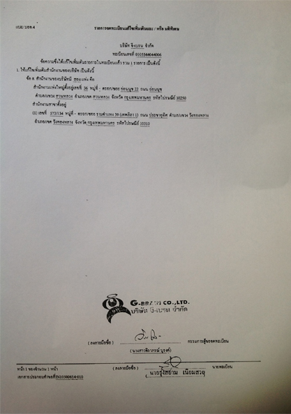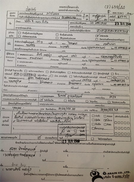 ทั้งนี้ ในการกรอกรายละเอียดแบบนำส่งงบการเงินบางปี ของ บริษัท จี-เบรน จำกัด และบริษัท กิ๊บสัน แอนด์ กัน จำกัด ยังปรากฏรายมือเหมือนกันด้วย