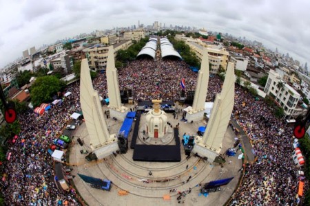 26 พ.ย. 2556 การชุมนุมประท้วงครั้งใหญ่กว่าครั้งใดที่เคยมีมาก่อนได้เกิดขึ้นในกรุงเทพมาหลายสัปดาห์แล้ว ในบางครั้งจำนวนผู้ชุมนุมพุ่งขึ้นไปถึงหลายแสนคน โดยตัวเลขโดยประมาณมีอยู่ระหว่างหนึ่งแสนถึงสี่แสนคนในช่วงที่คนมามากที่สุด ทำให้การชุมนุมครั้งนี้เป็นการชุมนุมที่ใหญ่ที่สุดในประวัติศาสตร์ไทยในยุคนี้